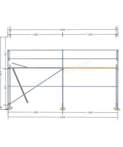 L’échafaudage en acier illustré avec planchers en bois offre une surface de travail de 27m², une largeur de 6m et une hauteur de travail maximale de 4,4m.