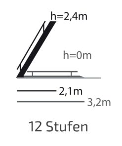 – Longueur de la passerelle horizontale : 3,2m / en tant qu’escalier : 0-2,4m