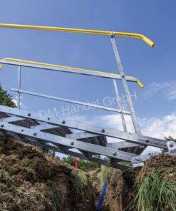 L’escalier de chantier Type 2 9S est une excellente alternative aux escaliers en bois. Grâce à sa structure modulaire, il permet de franchir facilement les différences de hauteur et de profondeur. L’inclinaison des marches peut être ajustée individuellement pour s’adapter parfaitement. Il est également idéal pour une utilisation horizontale comme passerelle piétonne. Grâce aux accessoires, plusieurs escaliers de tailles différentes peuvent être connectés.
